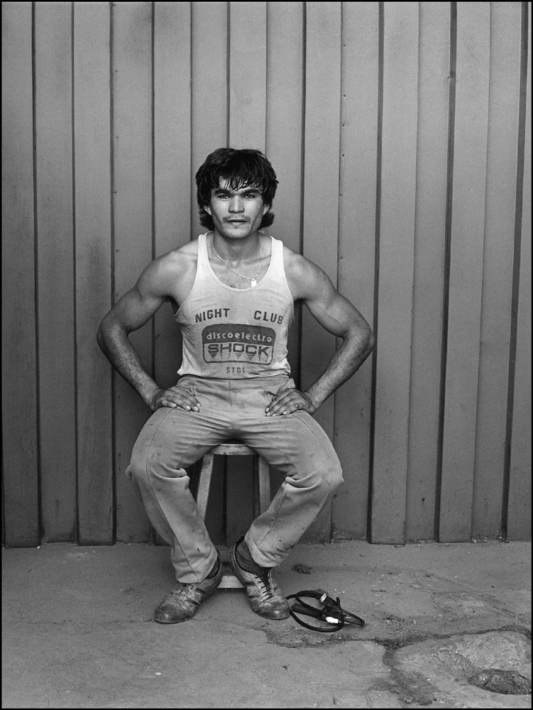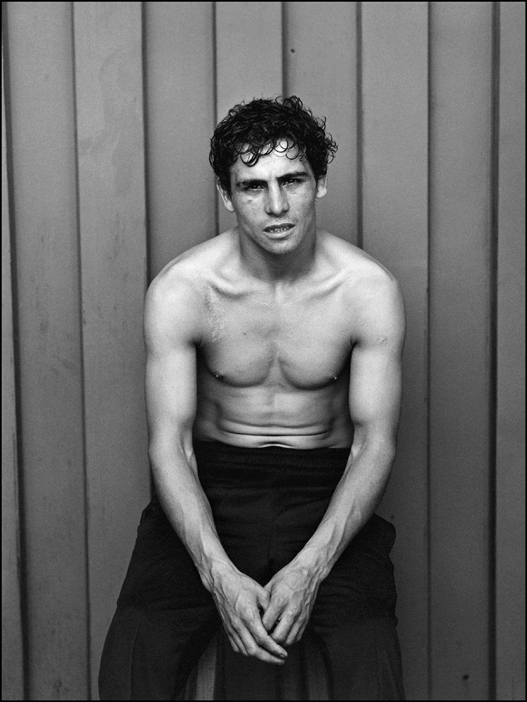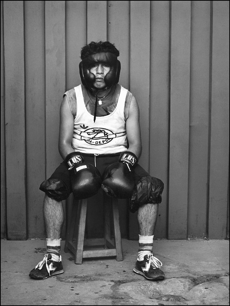 Los boxeadores, son tal vez los retratos mas asociados al imaginario fotográfico de Paz Errázuriz. Personificaciones del sacrificio corporal en poses deportivas heroicas, con expresiones faciales ausentadas ante la cámara, parodian el abandono y la exigua pertenencia a las instituciones de reproducción de la vida social.